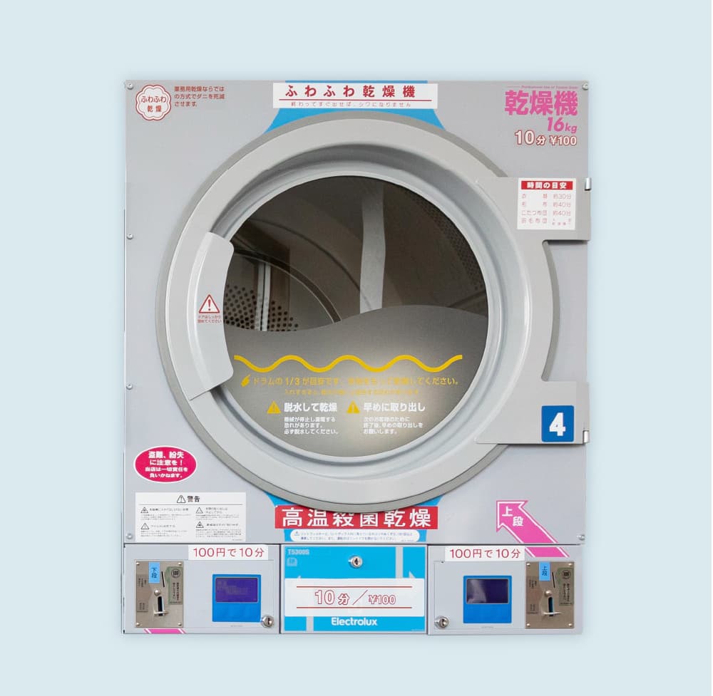 ガス熱源のため速乾性に優れ、ふんわり仕上がる乾燥機です。布団に生息するダニの死滅、ホコリの除去も行えるので、アレルギーをお持ちのお客さまにもオススメ。衣服や薄型の布団・毛布・タオルケットなどの乾燥に最適な中型サイズです。